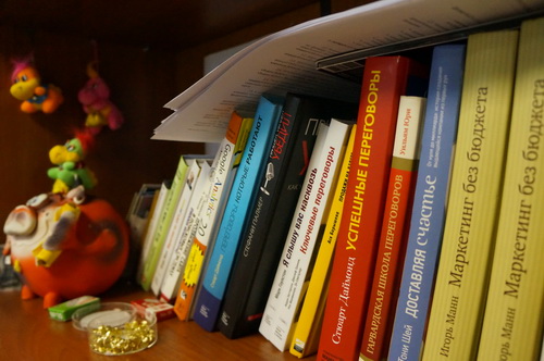 Наша компания занимается созданием, продвижением сайтов и оказывает весь комплекс услуг по проведению рекламных кампаний в интернете. Каждый год в интернет-маркетинге происходит что-то новое: вводятся передовые технологии, внедряются передовые инструменты и т. д. Сотрудникам просто необходимы новые знания, причем постоянно, и в поисках информации мы тянемся к книжной полке. Директор компании и идейный вдохновитель команды так любит книги, что регулярно пополняет наши полку интересными новинками бизнес-литературы. Кроме того, в офисе каждый из нас через секретаря может заказать новинки специализированной литературы.