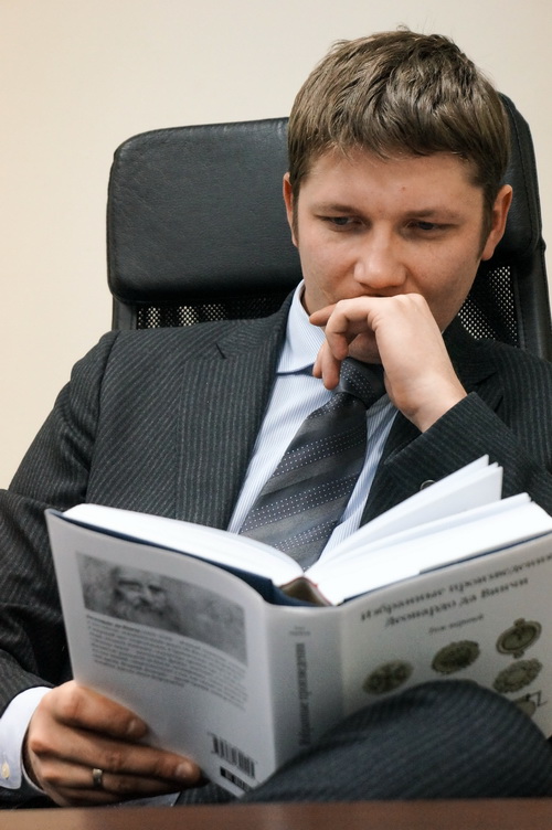 Он читает «Избранные произведения Леонардо да Винчи». Рукописи и чертежи гениального художника экспериментатора — незаменимые источники для разработки новых подходов к решению задач и в интернет-маркетинге. Теперь вы знаете, где мы черпаем идеи новых проектов.