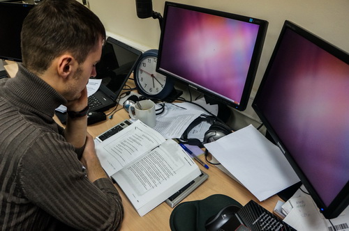 Тсс! На последнем фото технический директор «Оптимизм.ру» Роман, как не странно, тоже читает.