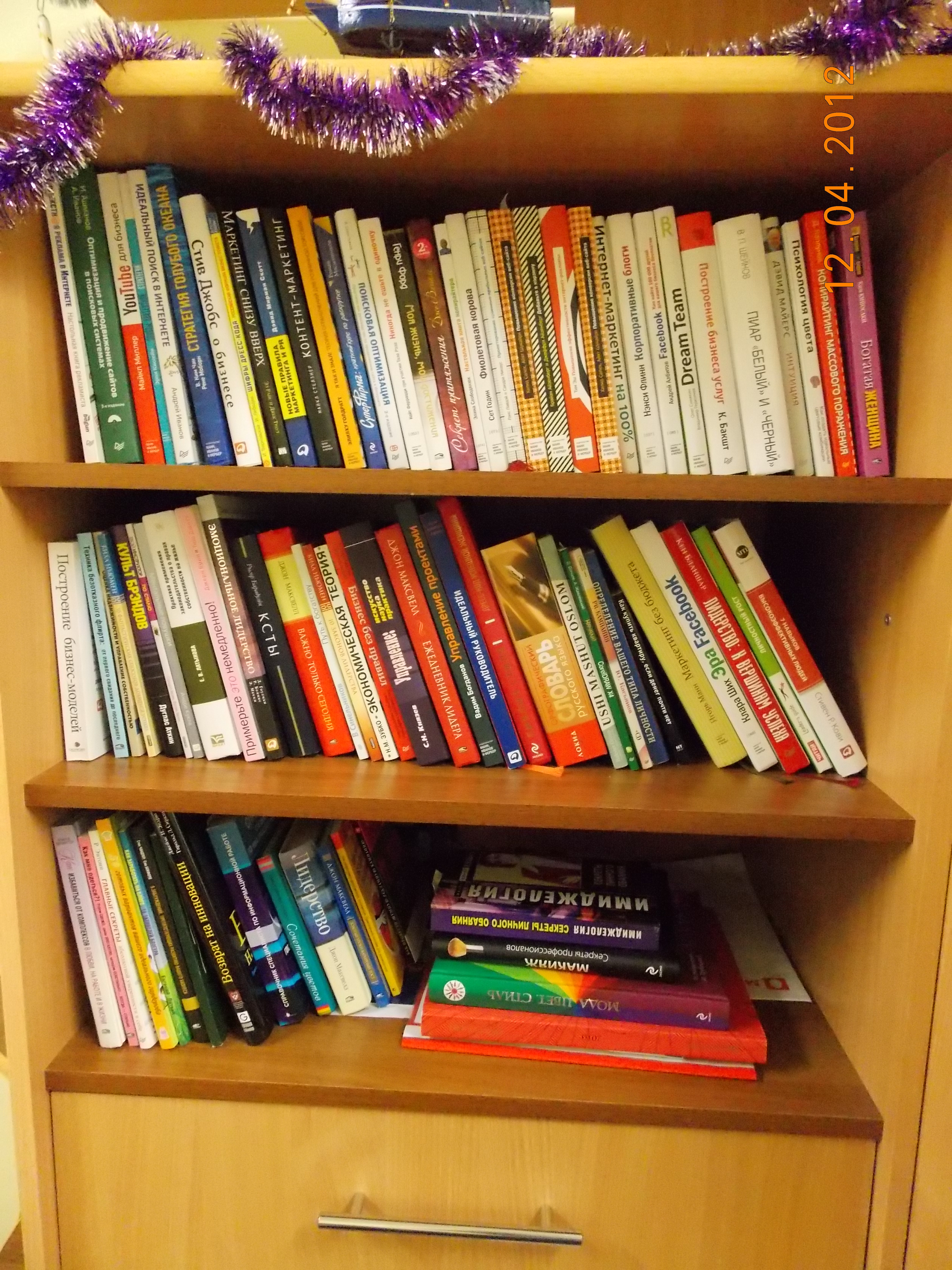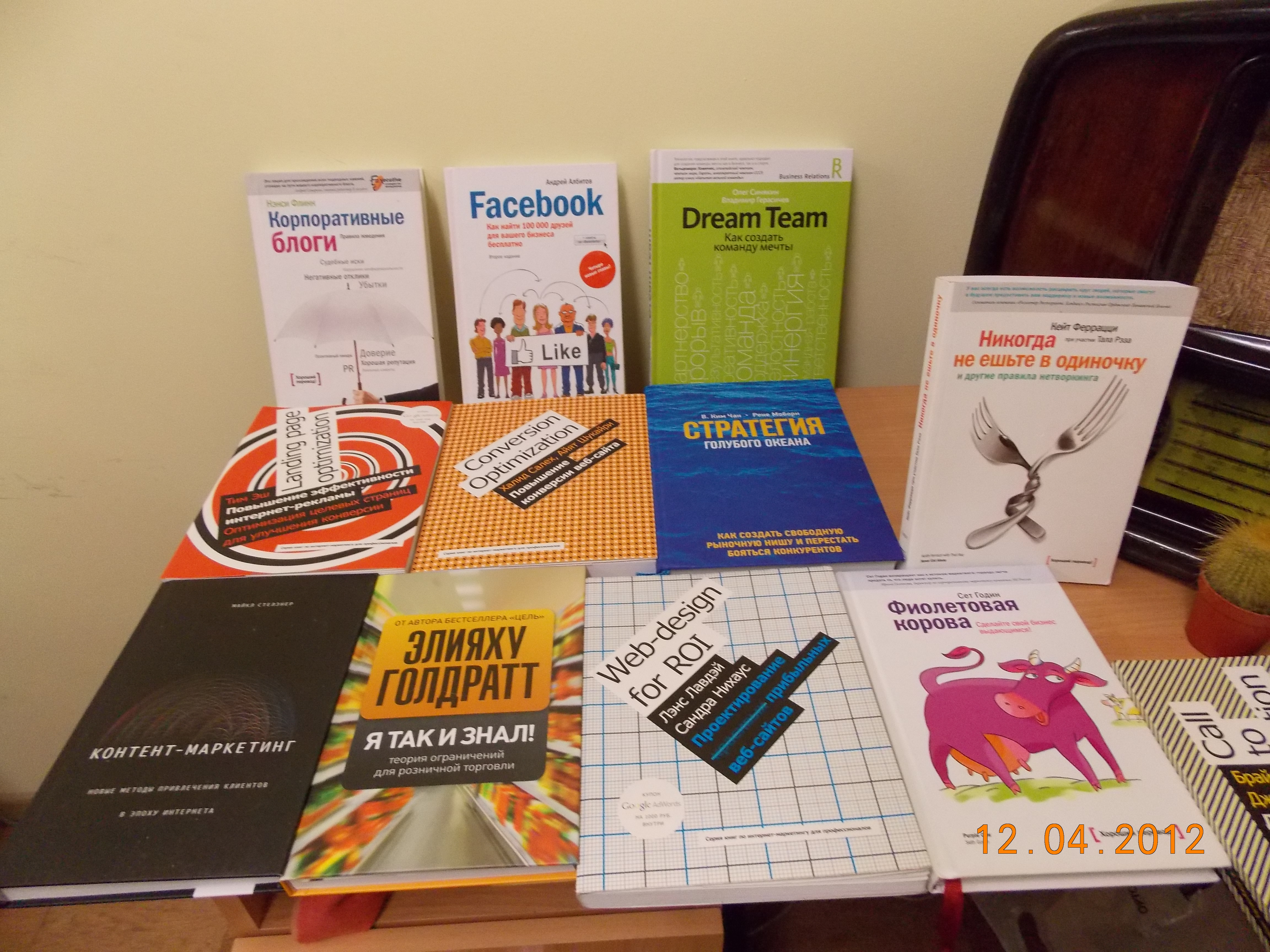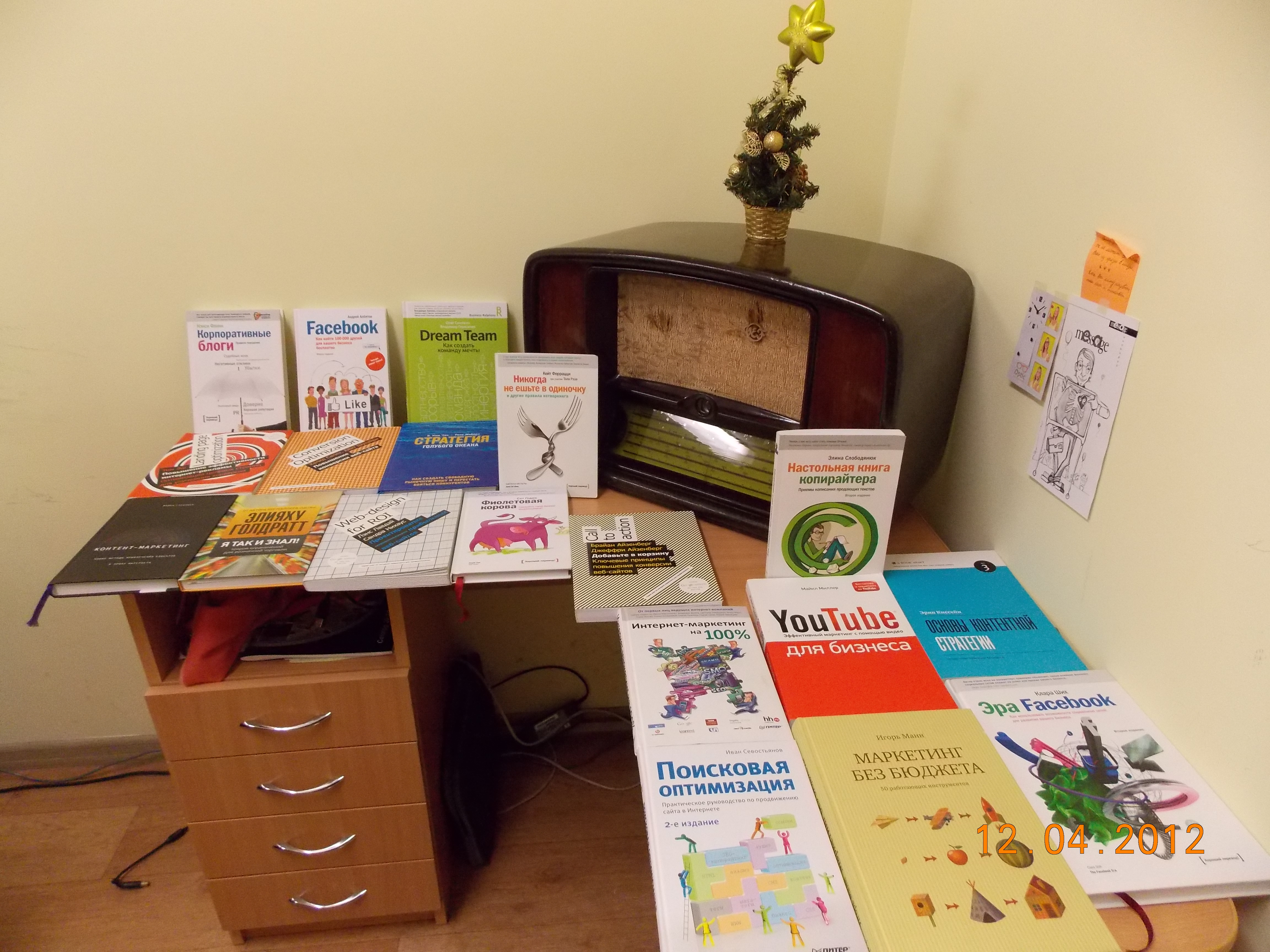 Компания работает в области мебельного бизнеса, но знания в сфере маркетинга, PR, эффективного построения отдела продаж и бизнеса в целом никогда не бывают лишними. Поэтому среди книг можно обнаружить «Эру Facebook» , «Основы контентной стратегии», «Маркетинг без бюджета».