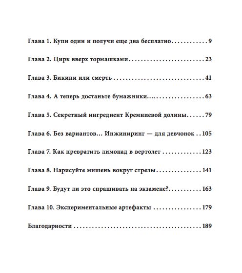 В ней говорилось о том, как автор книги — профессор предпринимательства Стэнфордского университета Тина Силиг — на одном из своих занятий раздала командам студентов по пять долларов и попросила их заработать как можно больше денег всего за два часа. Решения студентов оказались очень разными и неожиданными. Я многому научилась уже по первой главе. Содержание обещало больше.