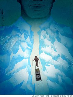 Как раз перед Колорадским нагорьем на долю этого путешественника выпадает подряд несколько дней хорошей погоды, и он пользуется ими на всю катушку, преодолевая ежедневно по 40-50 миль, чтобы наверстать упущенное. В результате, когда этот путник начинает восхождение и попадает в буран, силы у него на исходе. Едва уцелев, он прячется в свою палатку и остается пережидать зиму.