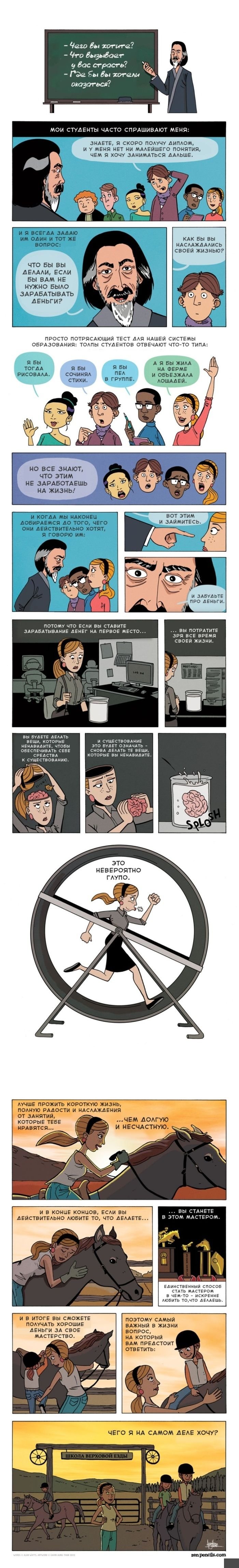 На днях с нами поделились ссылкой на любопытный комикс о том, что такое призвание и как даже самое неприбыльное, на первый взгляд, дело может начать приносить хороший доход, когда оно по душе.
