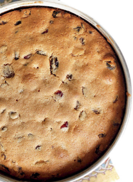 Выложите тесто в форму диаметром 20 см, смазанную маслом и посыпанную мукой, тщательно распределяя его лопаткой. В середине кекса сделайте ямку, так поверхность после выпечки будет более ровной. Выпекайте при 150°С около двух часов. Пеките кекс при невысокой температуре, потому что он долго пропекается. А если ваша духовка склонна зажаривать все подряд, оберните форму снаружи сложенной в несколько раз влажной газетой.