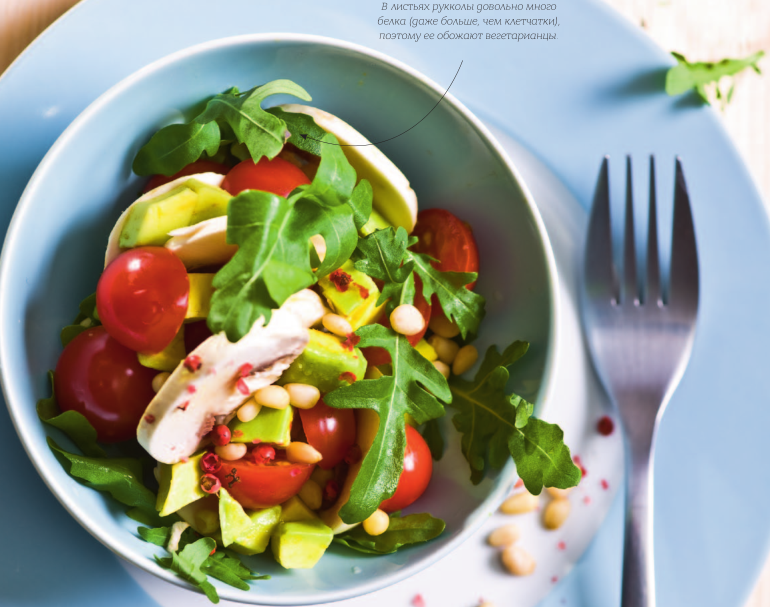 Перемешайте шампиньоны, рукколу, черри и авокадо. При подаче салат посолите, поперчите, посыпьте кедровыми орехами.