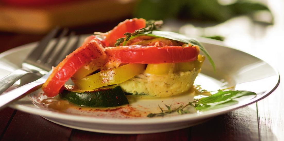 На дно глубокой сковороды уложите слоями: кабачки, лук, помидоры, сладкий перец. Каждый слой посолите и поперчите по вкусу. Смешайте 1 яйцо с молоком, взбейте венчиком или вилкой. Залейте овощи молочно-яичной смесью, посыпьте тертым сыром. Запекайте в духовке при температуре 180 °С до золотистого цвета.