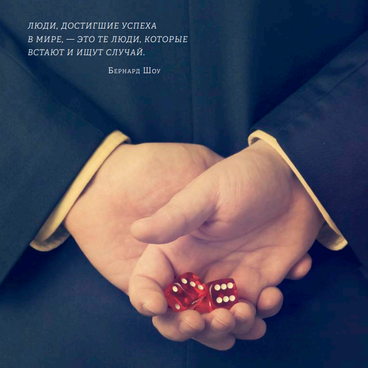 Случай! Всё решает случай! Но запомните закон: случай приходит только к тем, кто всё делает для того, чтобы этот случай пришёл. Всё делает. Это важно понять. Вы хотите влюбиться: будете дома сидеть — не влюбитесь. Нужно начать ходить на дискотеки, в театр, к друзьям и знакомым, организовывать свои вечеринки. Влюбитесь! Вы хотите найти призвание и определиться, чем хотите заниматься, — так ищите, расширяйте круг общения. И кто-то поможет вам ваше призвание найти. Я могу долго рассуждать на эту тему, но самое главное — запомнить фразу: «Его Величество Случай приходит только к тем, кто всё делает для того, чтобы этот случай пришёл», — и действовать. Поступайте так неделю, и вы убедитесь, что я прав!