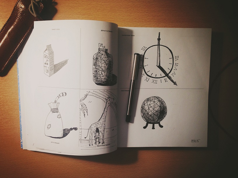 Рисуйте в тетради сами, отрабатывая технику и проверяя свои способности (получится ли у вас нарисовать все, что написано?). Или предложите друзьям и близким рисовать в вашей книге — и тогда вы получите бесценную тетрадь с рисунками на память от самых любимых и дорогих.