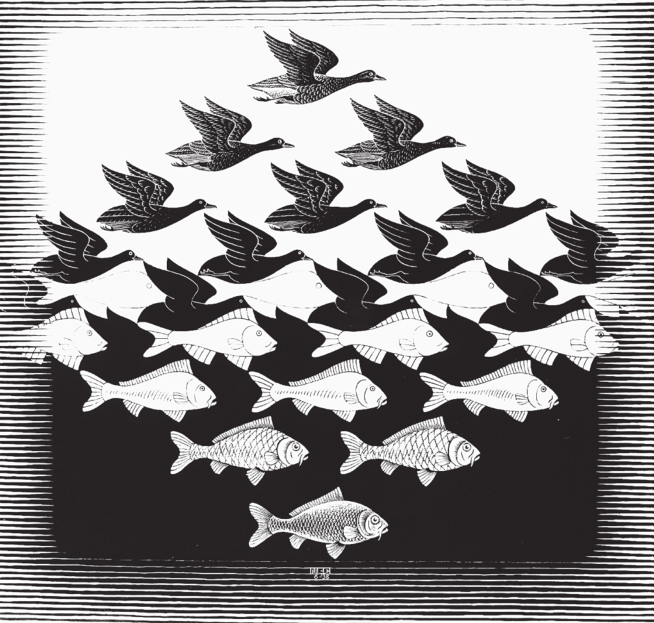 Некоторые художники и музыканты сознательно ломают наши рамки. Например, Мауриц Корнелис Эшер знаменит своими графическими работами, в которых он играет восприятием зрителя, заставляя его видеть различные фигуры попеременно то на переднем, то на заднем плане.