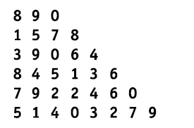 Внимательно рассмотрите пирамиду из чисел. В каждой строчке добавляется одна цифра. Запоминайте числа строчка за строчкой. Используйте столько времени, сколько вам нужно. Запишите на листе бумаги или в «записной книжке памяти» те числа, которые помните, по порядку и в тех же строчках.
