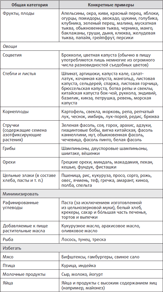 Очень полезны цельные продукты, содержащиесложные углеводы: необработанные фрукты и овощи, — а также продукты из цельных злаков, например нешлифованный коричневый рис и овсянка. Неочищенные углеводы, особенно из фруктов и овощей, оказывают исключительно благотворное воздействие на здоровье.