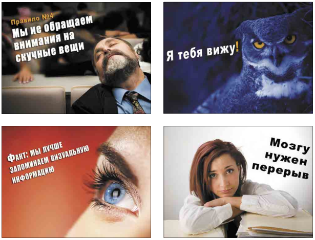 2. Изображения всегда влияют на повествование, иногда сильно, иногда не очень. Эти шесть слайдов содержат одинаковый текст. Заметьте, как меняется смысл этого текста в зависимости от картинки (изображения на слайдах взяты с iStockphoto.com):