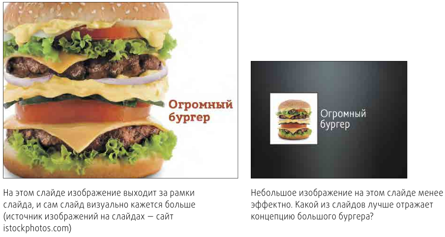 3. Рамка вокруг изображения — его своеобразная защита. Если вы размещаете на одном слайде несколько иллюстраций для сравнения, они должны иметь рамки, чтобы зритель четко понимал, где заканчивается одна картинка и начинается другая. Однако в большинстве случаев люди вставляют в слайды слишком маленькие изображения. Их содержание трудно разобрать, а поэтому и воздействие на зрителя невелико. Если возможно, постарайтесь сделать так, чтобы картинка не просто занимала весь слайд, а слегка выходила за его края.