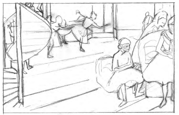Как только вы нанесли первый штрих на чистый лист, вы начинаете построение композиции в пределах пространства рисунка.