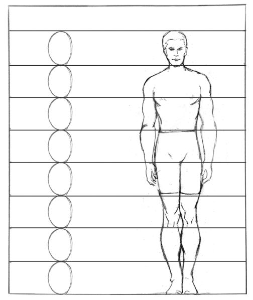 Рисуете ли вы человеческую фигуру с натуры или «из головы», понимание базовых пропорций чрезвычайно поможет вам в этом. Если вы разделите фигуру среднестатистического человека (не очень низкого и не очень высокого) на горизонтальные секции размером с человеческую голову, то разделение получилось бы такое: