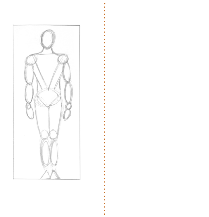 Попросите друга мужского пола позировать вам или используйте нарисованную ниже модель. Используйте простые формы (овалы, прямоугольники, треугольники и т. д.) для практики в создании эскизов мужских фигур.