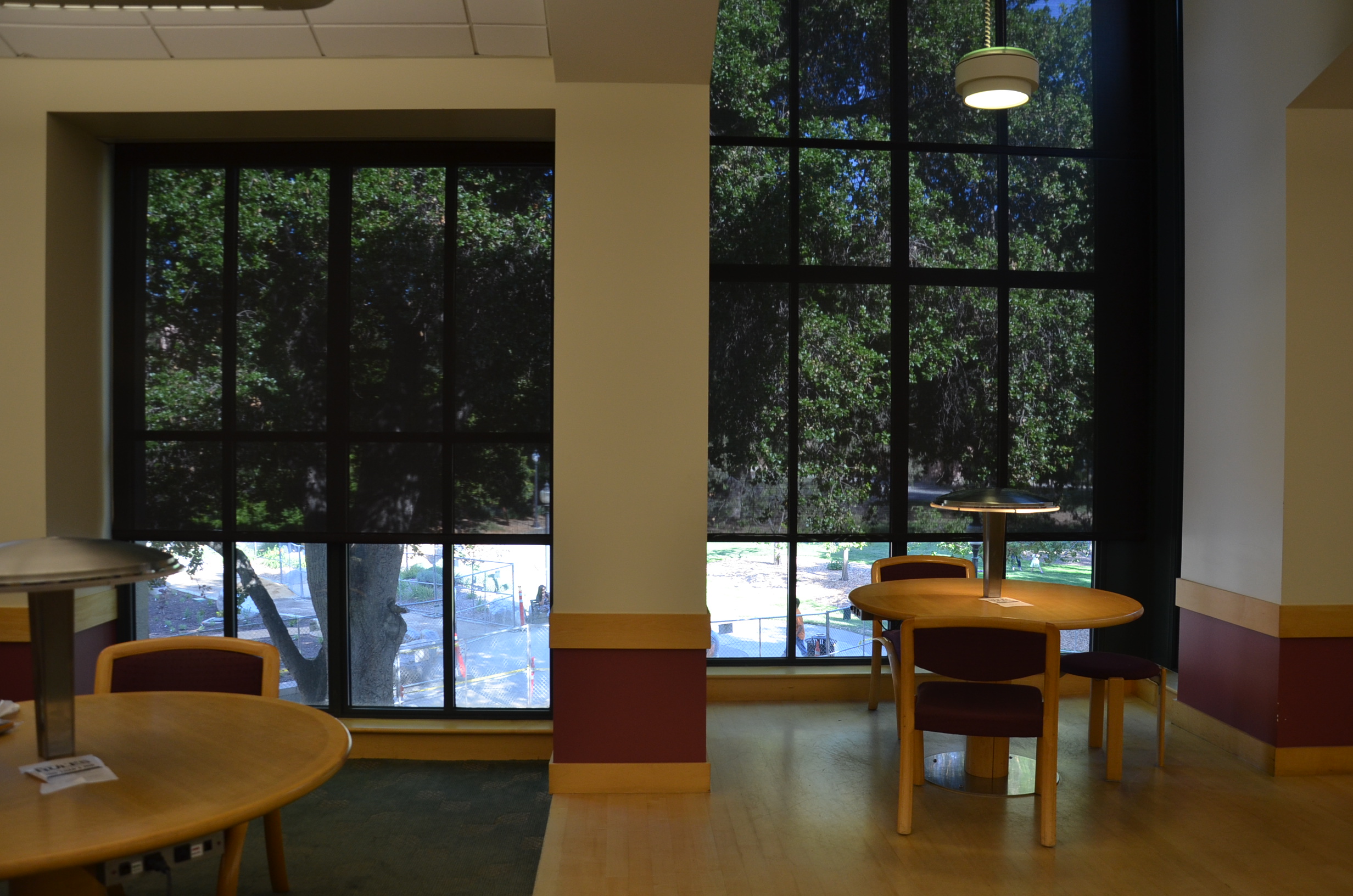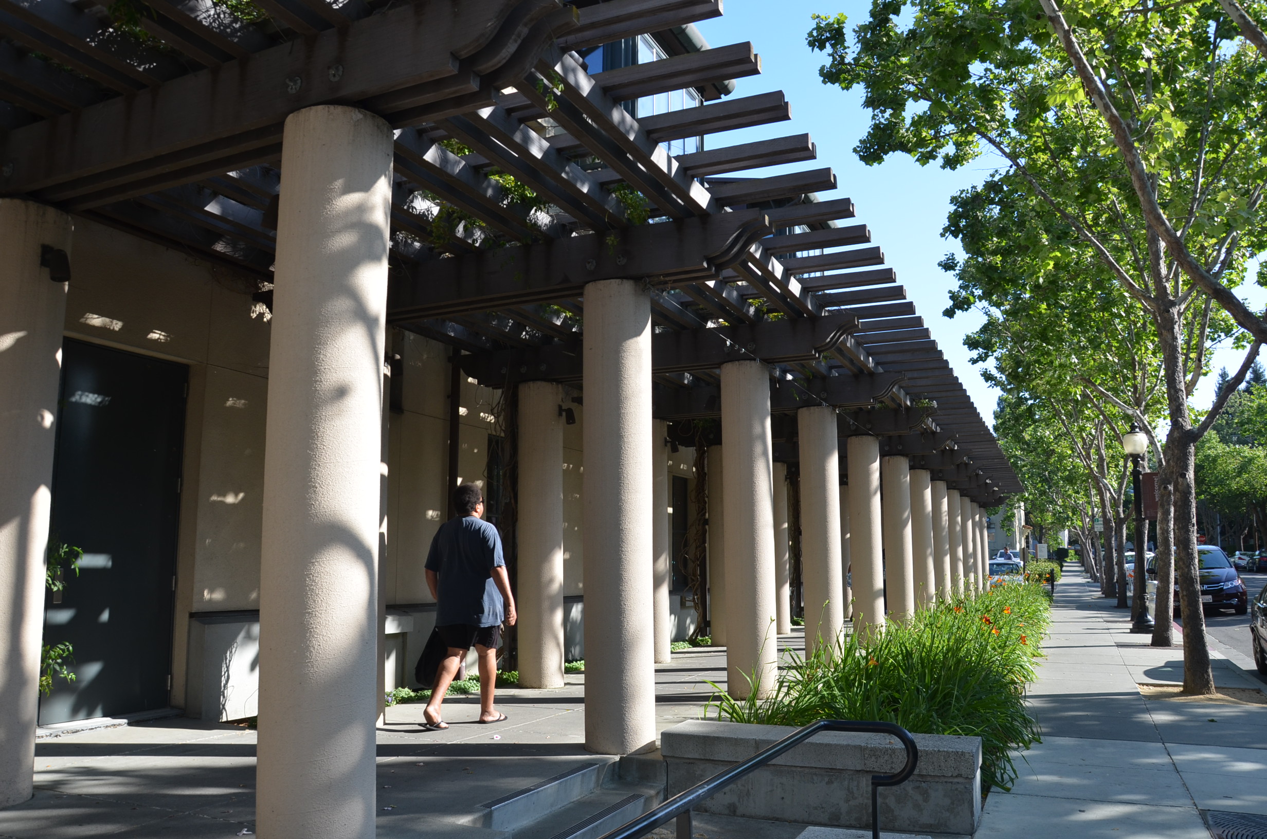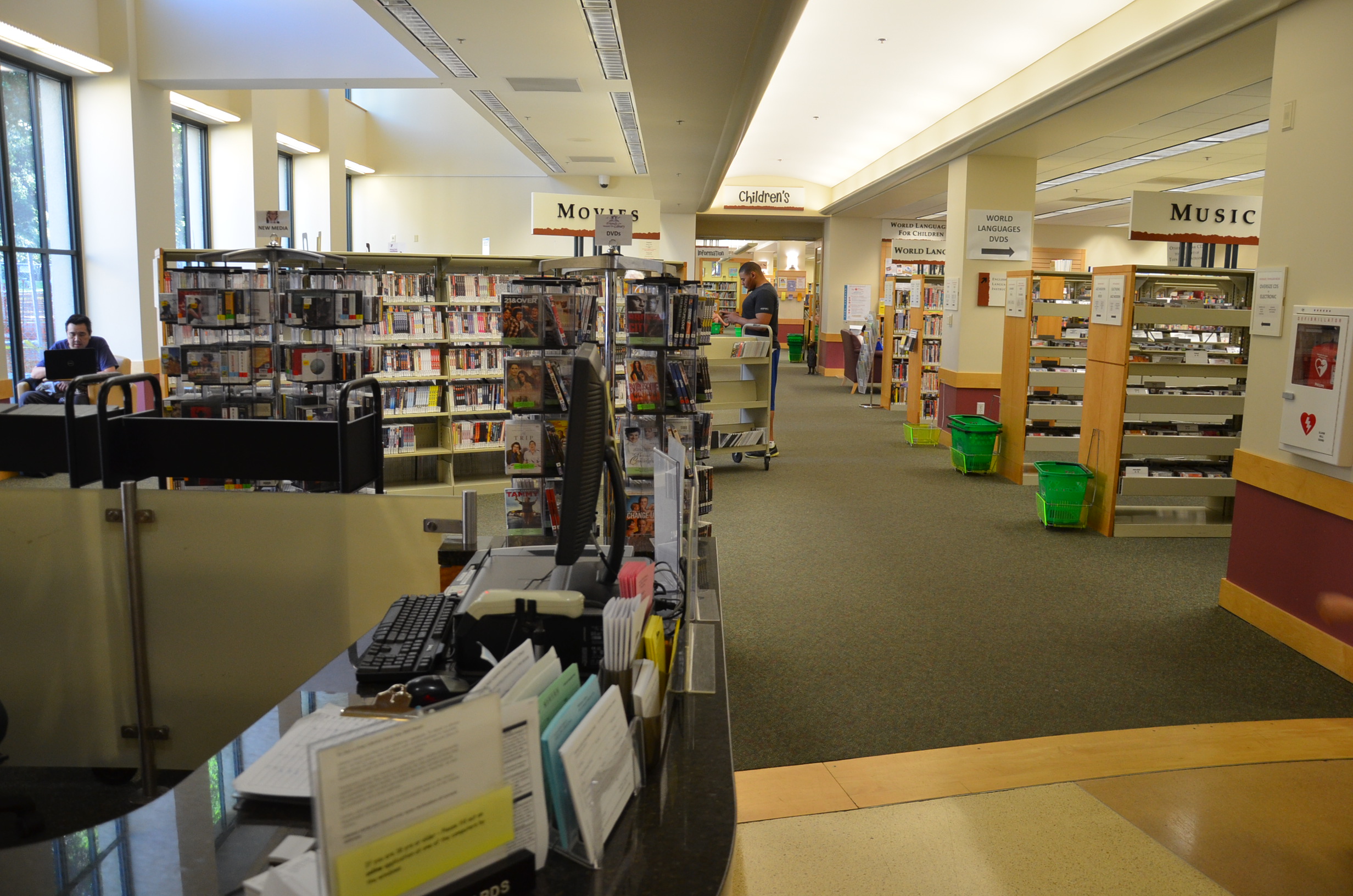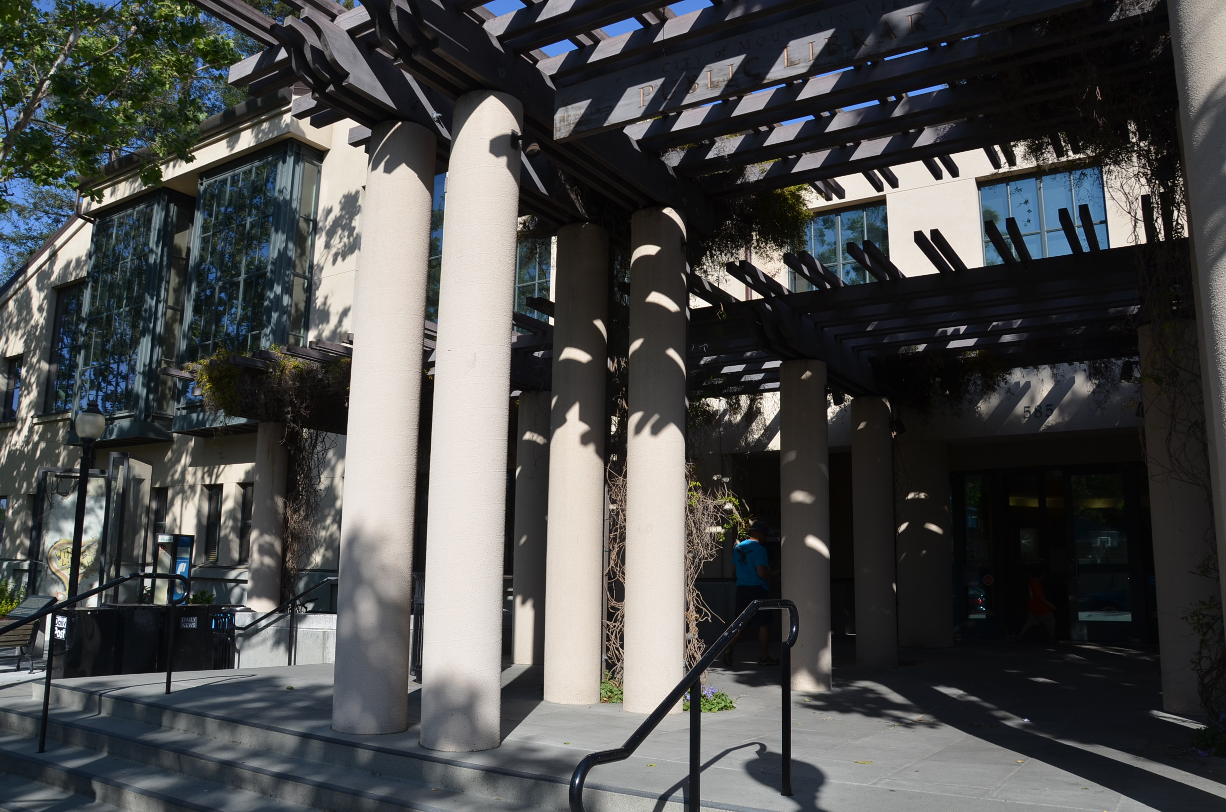 Красивое двухэтажное здание в центре города, недалеко от самой главной улицы Калифорнии El Camino. Есть парковка для машин и велосипедов. У библиотеки три входа: основной спереди и два задних. На заднем дворе небольшой парк.