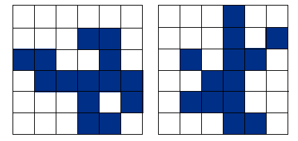 Внимательно рассмотрите два рисунка. Затем, не глядя на них, нарисуйте на листе бумаги или в «записной книжке памяти» один квадрат размером 6 × 6 клеток вроде того, что вы только что рассматривали. Закрасьте в нем только те клетки, которые были закрашенными одновременно и в первом, и во втором квадрате. По окончании упражнения проверьте себя.