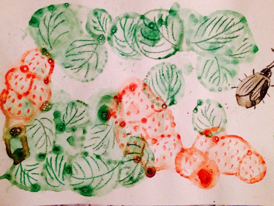 Прекрасная клубничная лужайка и отлично переданный кусочек лета (рисунок племянницы и подрисовка Любавы Салий).