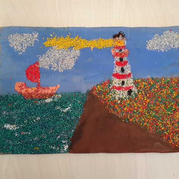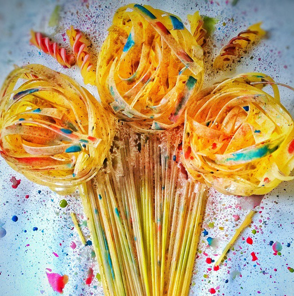 В четвертом туре конкурса участники раскрашивали макароны и рис и делали удивительные аппликации.