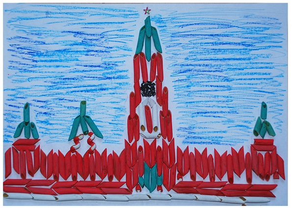 Московский Кремль, отлично выполненный в макаронной аппликации, — @fly_irinka84