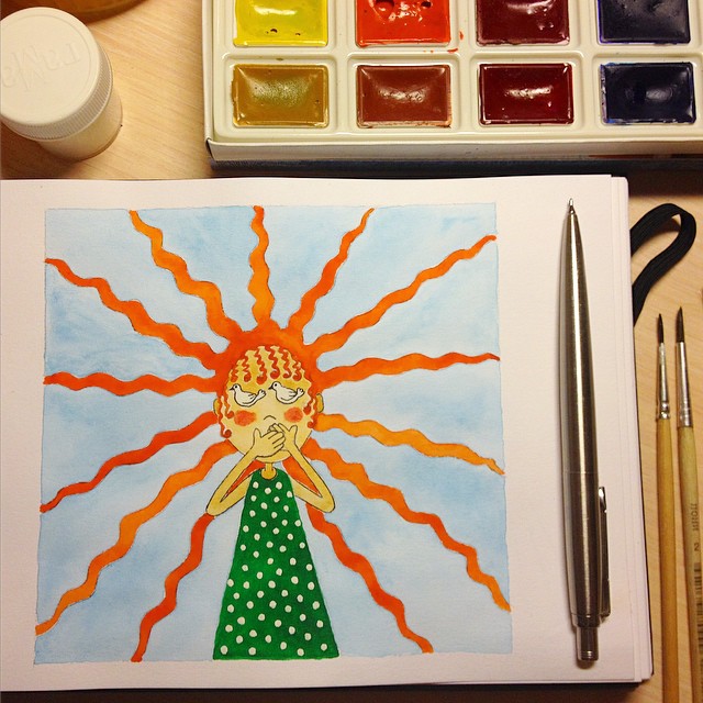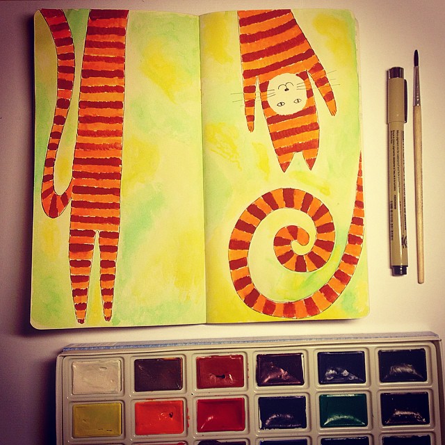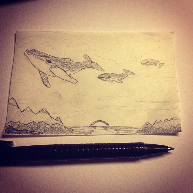 В начале проекта я думала, что рисовать что-то свое будет сложнее, чем срисовывать. Но образы приходят сами. Увидеть образы будущих рисунков можно в контурах теней, облаков, листьев на деревьях, в композиции капель дождя на стекле, в узоре на коврике в ванной. Взгляд за что-то зацепляется, а дальше я замираю и смотрю, какие образы приходят. Мне нравится придумывать свои сюжеты. И переносить на бумагу свои фантазии. Пока они немного мультяшные. Зато потихоньку вырисовывается свой стиль. Рисовать то, чего нет. Помещать что-то в непривычные для него рамки. Убирать рамки. Так появились инопланетянин-эскимос, длинный кот, четырехглазик, голубь в доспехах, девочка-лето с птицами вместо глаз, киты в небе.