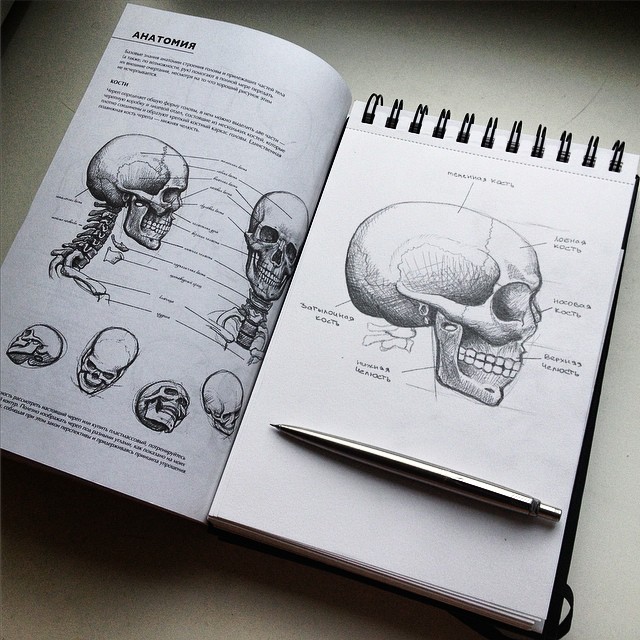 «Для правильной передачи внешних форм и решения поставленных эстетических и стилистических задач художнику важно не только наблюдать за живой моделью, но и обладать минимальными (но не поверхностными) знаниями об анатомии человеческого тела, в строении которого выделяют скелет, суставы, мышечную массу и кожный покров».