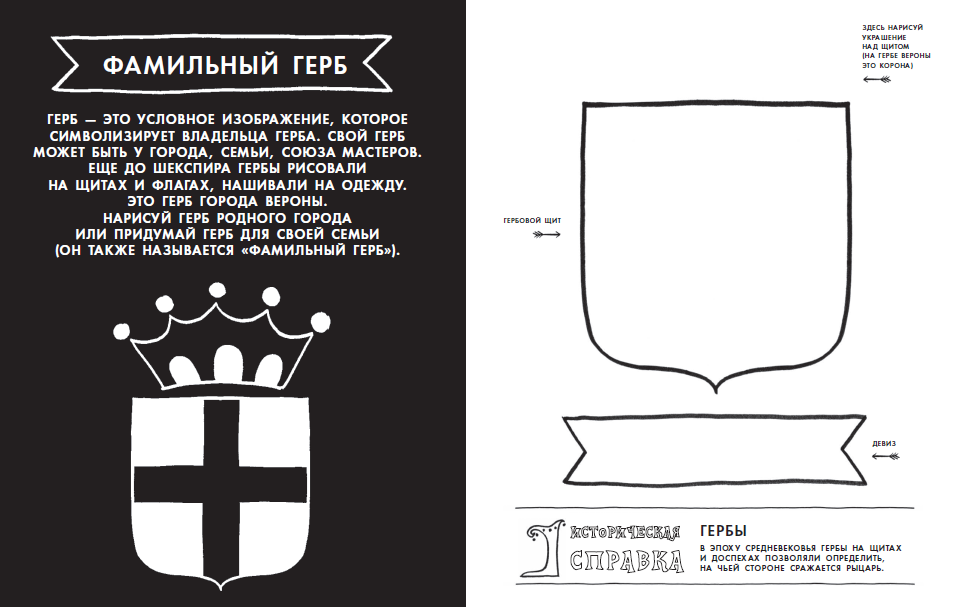 Нарисуйте свой фамильный герб. Как, нет герба? Поздравляем, начиная с вашего поколения, у вас будет фамильный герб 🙂