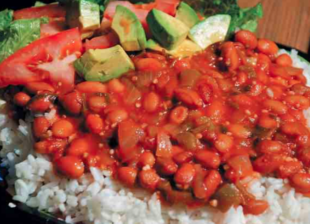 4. Подавайте фасоль на гарнире из риса и с салатом сверху.