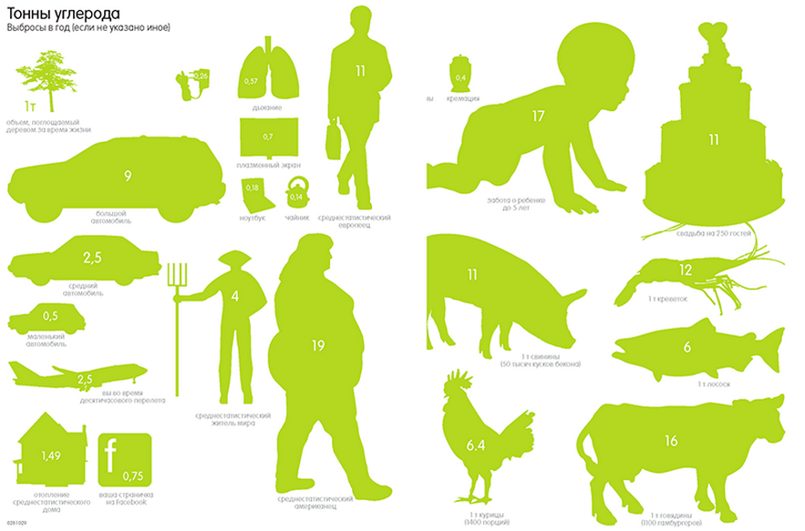 Выбросы углерода, инфографика. Иллюстрация из книги «Инфографика. Самые интересные данные в графическом представлении»