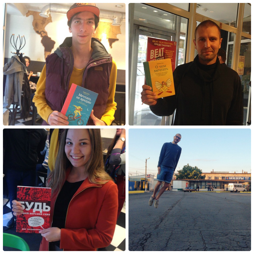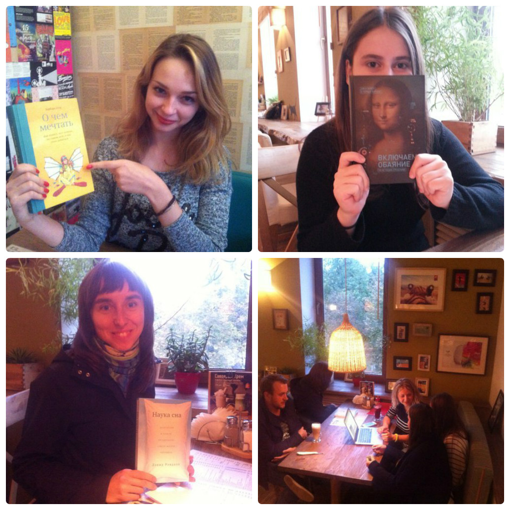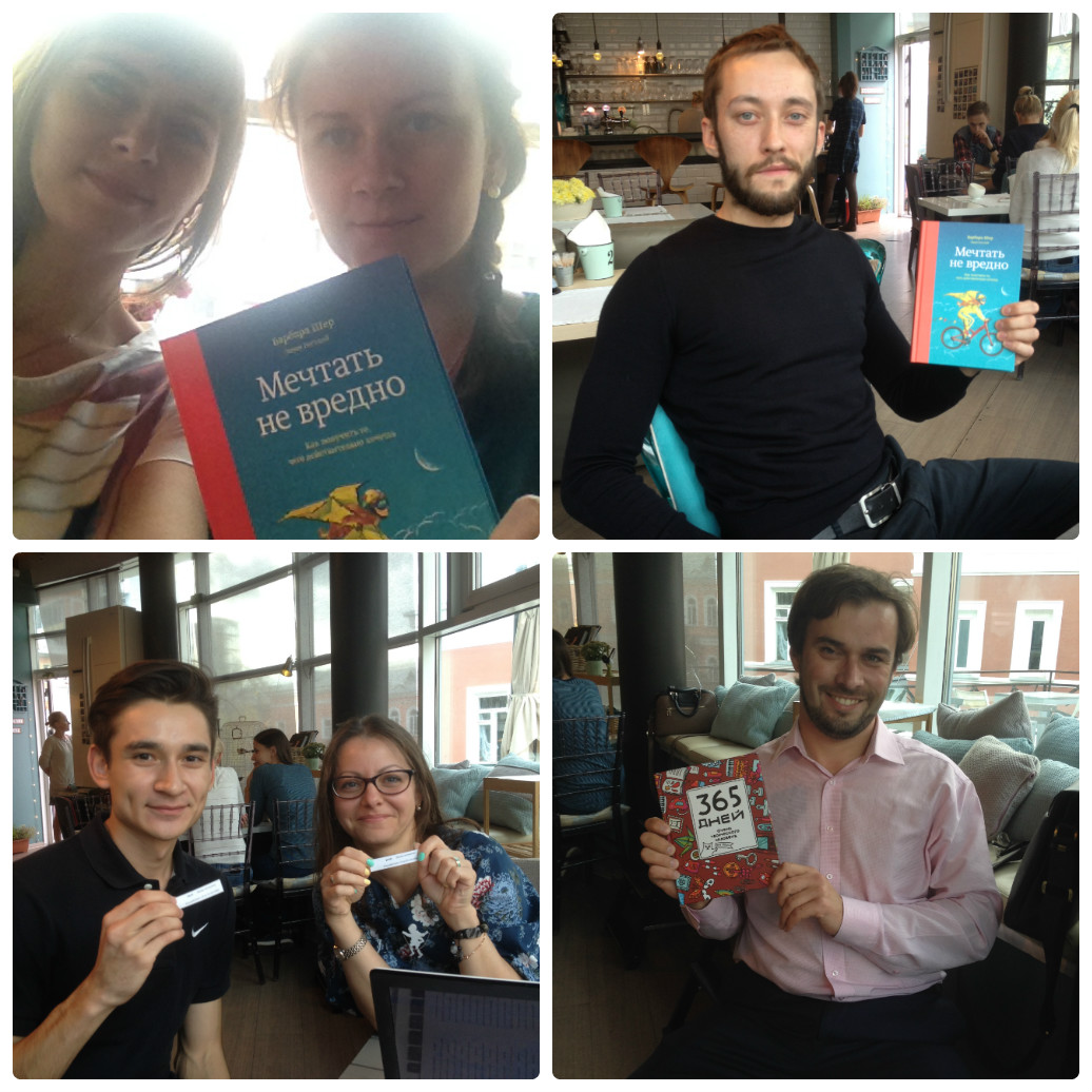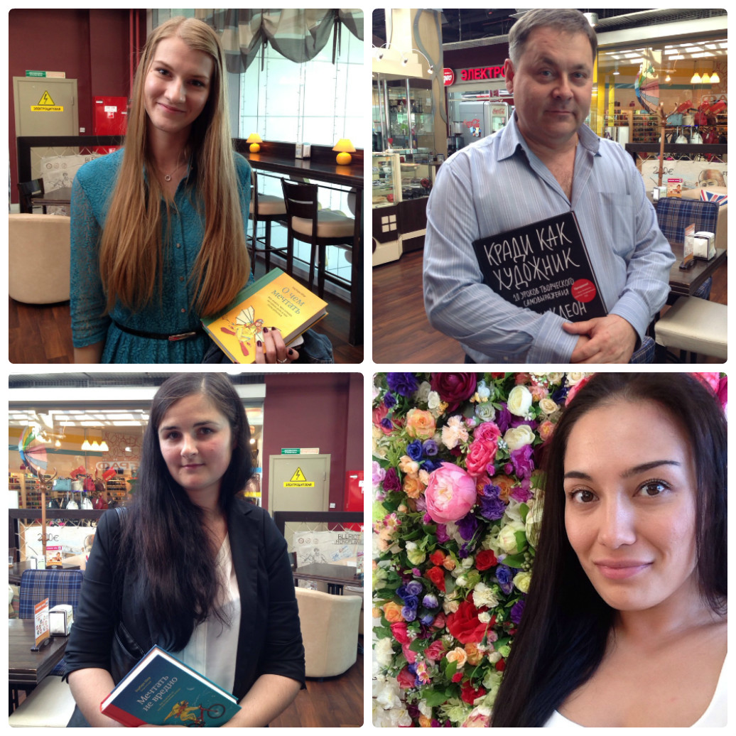 Люди приходили разные и классные. Всех, кто не успел сбежать, Лариса поймала и допросила. Нам же интересно, какие вы, наши читатели -) Когда она приехала в зашифрованное место, там уже было человек 10, которые тут же налетели на отважную Ларису. Трое первых получили по бумажной книге, а все остальные — промокоды.