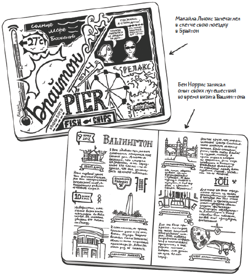 «Это очень занимательно — создавать рисунки, которые в итоге оказываются памятным сувениром из поездки. Такой сувенир ценнее тысячи фотографий». Крис Спалтон, дизайнер.