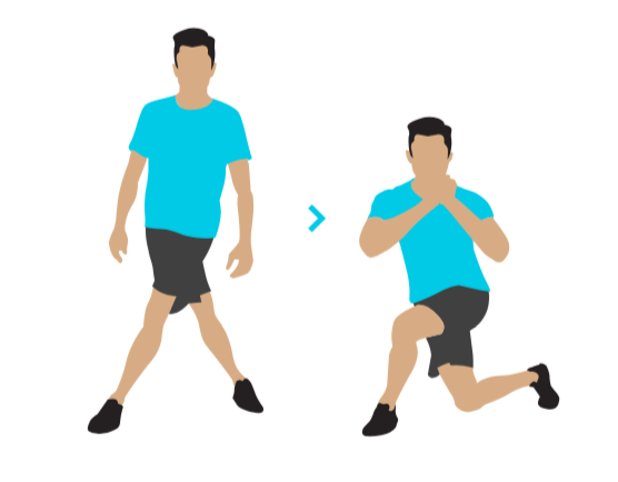 1. Начните с обратного выпада, шагнув правой ногой назад.