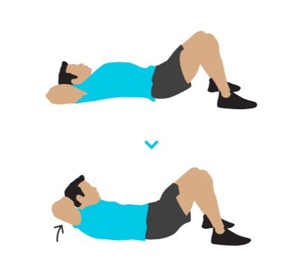 1. Начните лежа с согнутыми коленями, ступни стоят на земле. Ладонями рук поддерживайте голову во время движения, чтобы не напрягать шею, но ни в коем случае не давите на голову вперед.