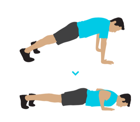 2. Медленно опуститесь грудью к полу, сгибая руки.