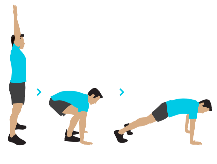 3. Прыгните обеими ногами назад в позицию для отжиманий.
