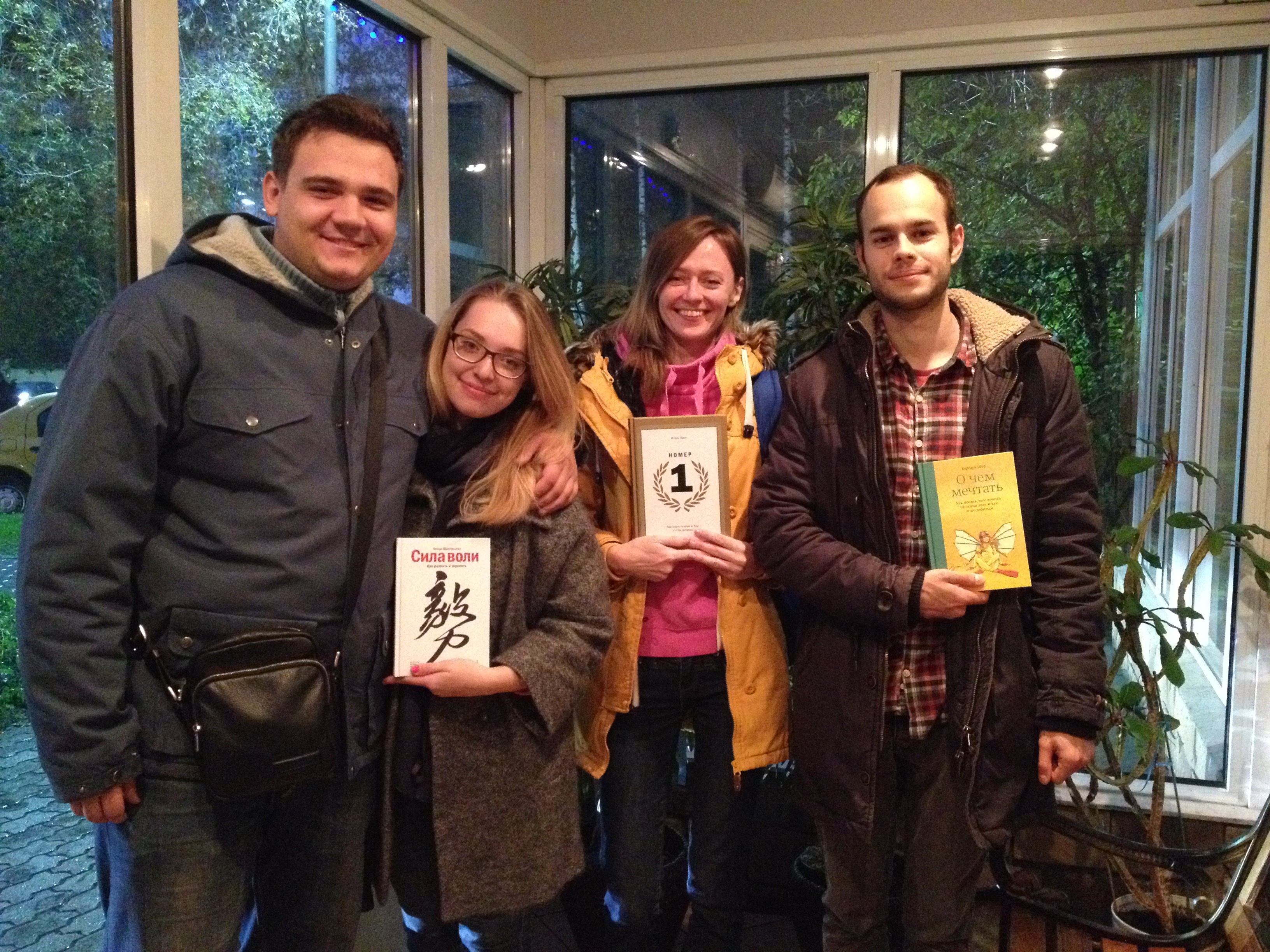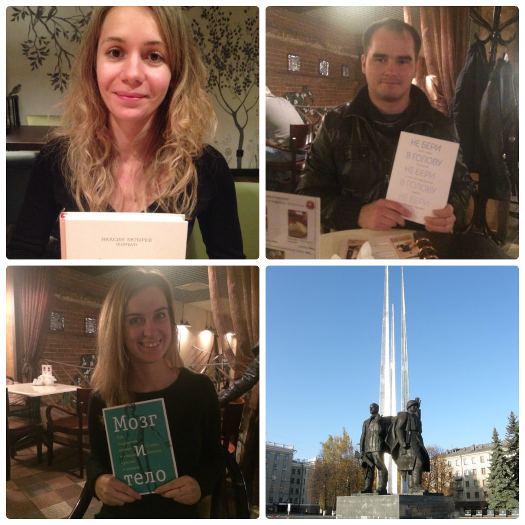 За книжкам для тех, кто постарше (не 18+, конечно, но что-то вроде того :-)), пришли замечательные люди. А самое приятное, что никто не уходил, так и прообщались весь вечер. Состав разный: инженер, фотограф, тренер по ораторскому искусству, продавец в «Буквоеде». У всех большой опыт чтения книг МИФ — это порадовало, собственно и обсуждали книги и идеи из книг. Хвалили «Силу воли», «Жизнь на полной мощности», «Гибкое сознание», «Будь лучшей версией себя», пожурили (да-да, мы рады любым отзывам от наших читателей) за «Твори каждый день», «Нетворкинг для интровертов». Спрашивали, почему не переиздаем некоторые спортивные книги.