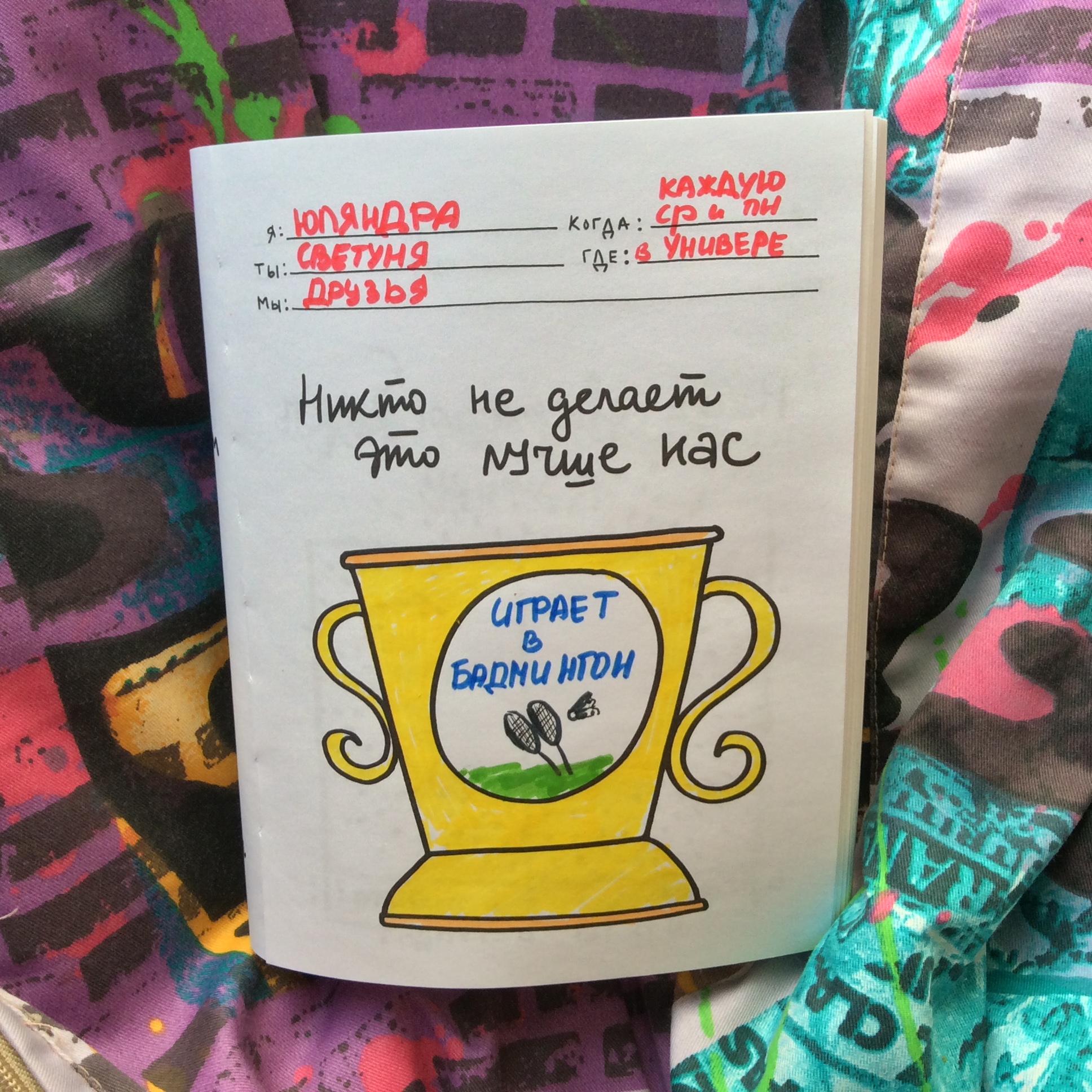 …для закадычных друзей: носите книгу в сумке и заполняйте по странице всякий раз, когда увидитесь друг с другом. Представьте, как быстро вы справитесь со всей книгой!