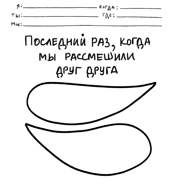 Нет правил и верных ответов. Откройте блокнот наугад и с помощью подсказок в книге запишите любые (пусть и нелепые или смешные) мысли либо приятные воспоминания, которые придут вам в голову. Обсудите их вместе. Или нарисуйте что-нибудь вдвоем. Молчание, когда все и так понятно без слов, — что может быть лучше, не правда ли?