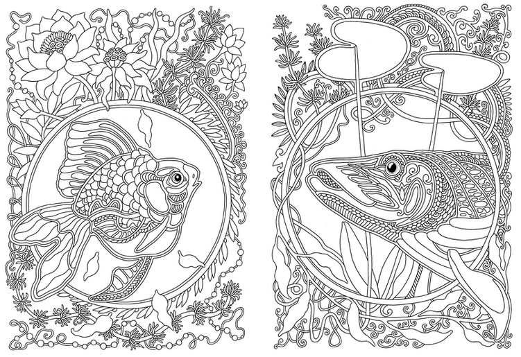 А эта раскраска понравится любителям природы. На ее страницах живут удивительные звери, птицы, рыбы и насекомые. Затейливые орнаменты переплетаются с листьями, цветами и плодами. Витиеватые узоры и множество мелких деталей создают широкий простор для творчества и дают возможность попробовать любые цветовые решения.