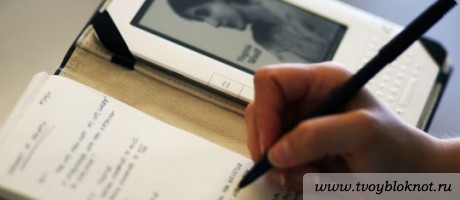 Мировой бренд блокнотов Moleskine выпускает необычный блокнот. Это обложка для электронной книги и блокнот для записей. Очень удобно потому что позволяет не забывать дома попеременно то блокнот, то электронную книгу.