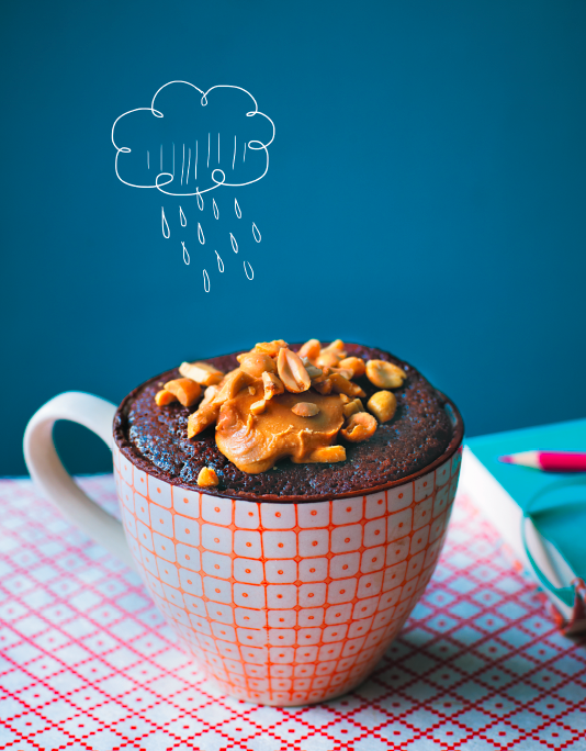 Пока кекс теплый, намажьте его сверху оставшейся арахисовой пастой. Дайте ей немного подтаять и посыпьте рубленым арахисом. Забирайтесь на диван и наслаждайтесь!