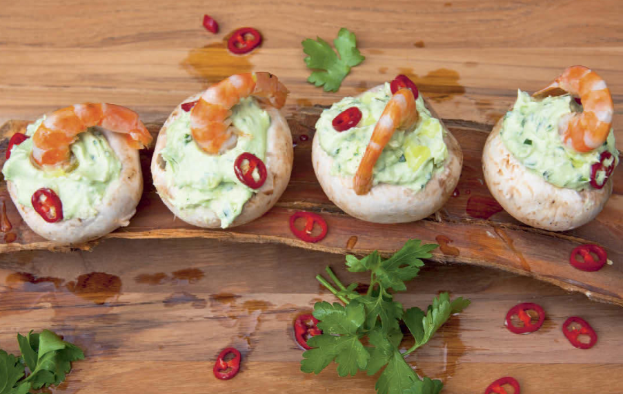 Шампиньоны, фаршированные авокадо, с креветками (рецепт из книги «Кухня нараспашку»)