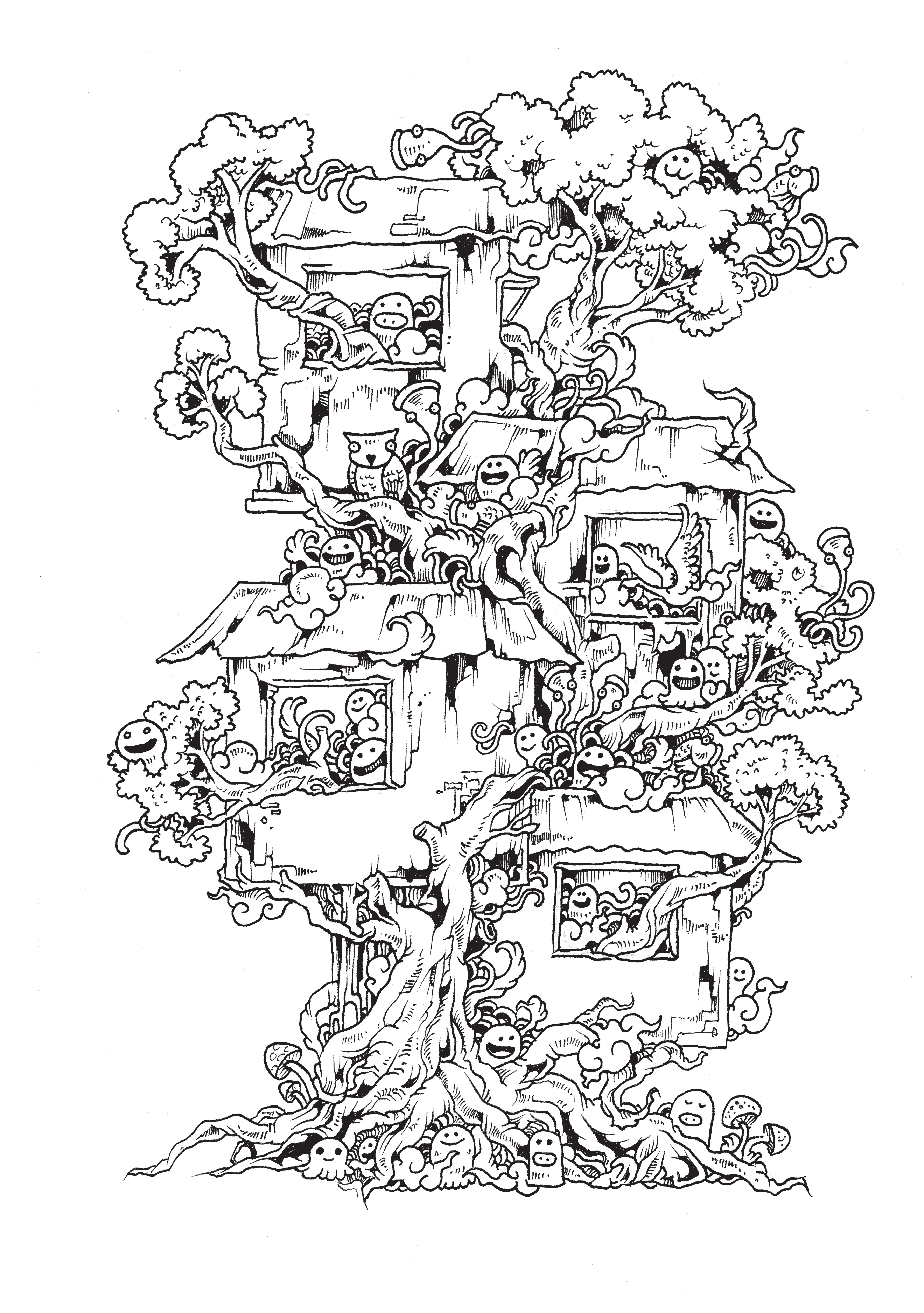 Дерево-дом для монстров из раскраски «Вторжение дудлов».