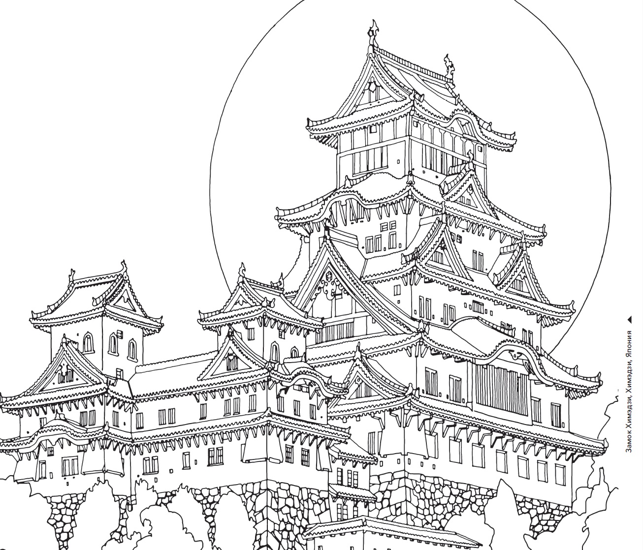 Японский замок Химэдзи из раскраски «Удивительне города».