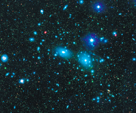 Галактическое скопление Кома, увиденное через сильный телескоп. Иллюстрация из книги