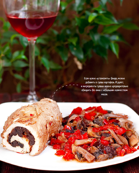 Рулет из индейки с гуляшом из шампиньонов