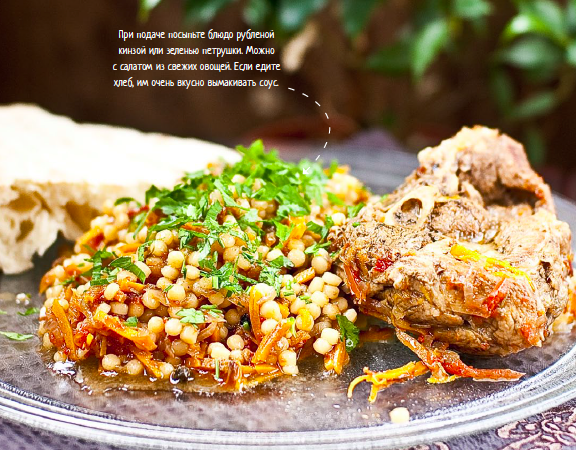 Кускус – это манная крупа, скатанная в шарики (для этого крупу сначала смачивают). Если кускус крупный (птитим, израильский, на фото с бараниной), его можно готовить в режиме тушение, а обычный мелкий достаточно просто подержать в режиме подогрев.