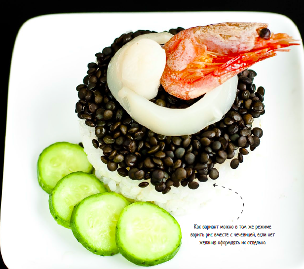 Рис с черной чечевицей и морепродуктами