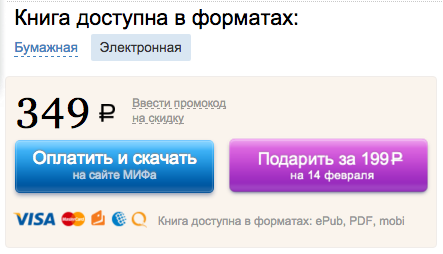P.S. Сделать подарок по спеццене можно и прямо со странички с описанием книги (вкладка «Электронная») — нажимайте волшебную кнопку!